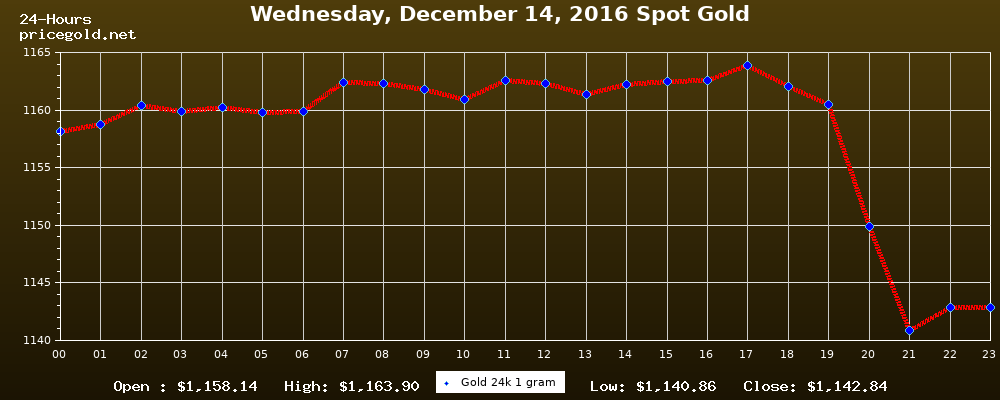 Gold price on Wednesday, December 14, 2016