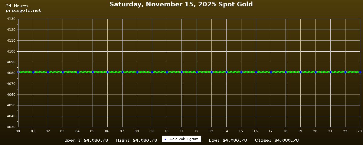 On Saturday, November 15, 2025, the gold price was $4,080.78 per ounce. The price of gold per gram is $131.20. Today's highest gold price was $4,080.78, while the lowest was $4,080.78.
