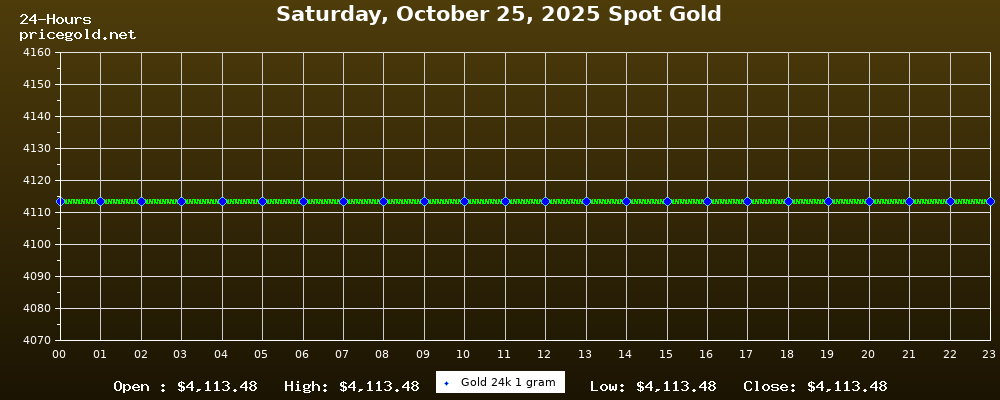 On Saturday, October 25, 2025, the gold price was $4,113.48 per ounce. The price of gold per gram is $132.25. Today's highest gold price was $4,113.48, while the lowest was $4,113.48.