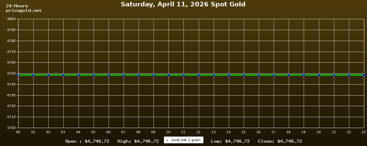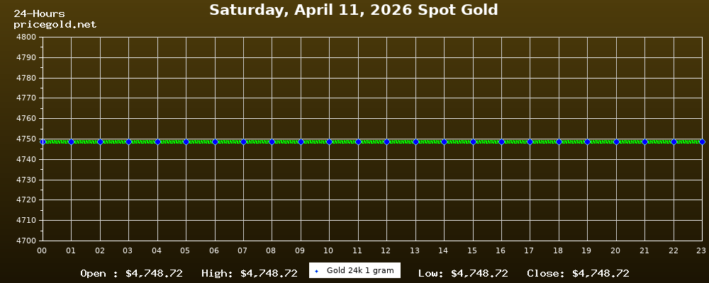 On Saturday, April 11, 2026, the gold price was $4,748.72 per ounce. The price of gold per gram is $152.68. Today's highest gold price was $4,748.72, while the lowest was $4,748.72.