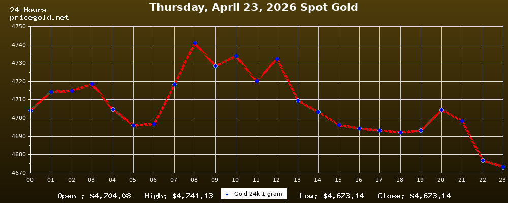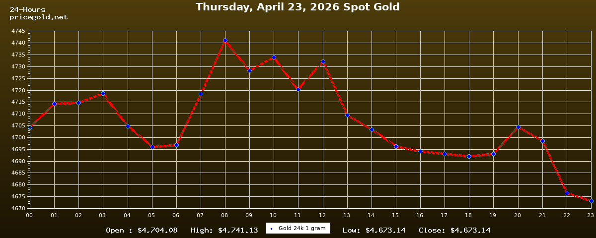 On Thursday, April 23, 2026, the gold price was $4,673.14 per ounce. The price of gold per gram is $150.24. Today's highest gold price was $4,741.13, while the lowest was $4,673.14.