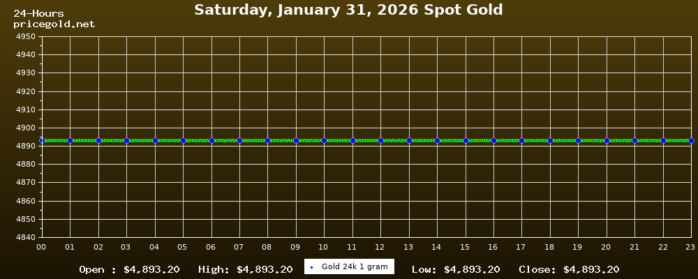 On Saturday, January 31, 2026, the gold price was $4,893.20 per ounce. The price of gold per gram is $157.32. Today's highest gold price was $4,893.20, while the lowest was $4,893.20.