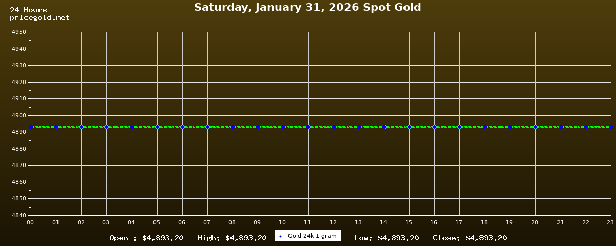 On Saturday, January 31, 2026, the gold price was $4,893.20 per ounce. The price of gold per gram is $157.32. Today's highest gold price was $4,893.20, while the lowest was $4,893.20.
