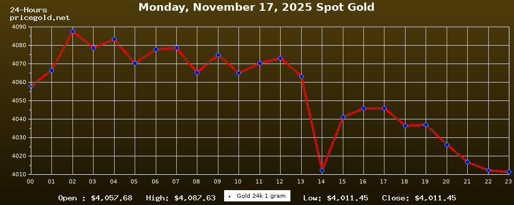 أداء الذهب في يوم الاثنين، ١٧ نوفمبر ٢٠٢٥