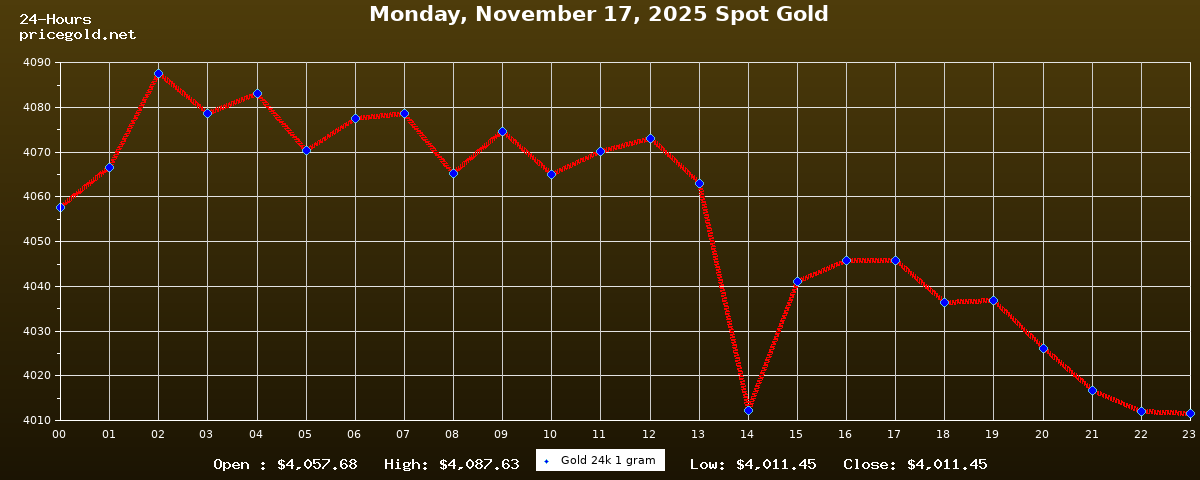 أداء الذهب في يوم الاثنين، ١٧ نوفمبر ٢٠٢٥