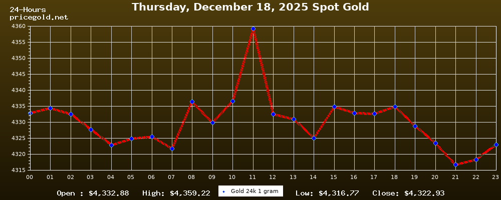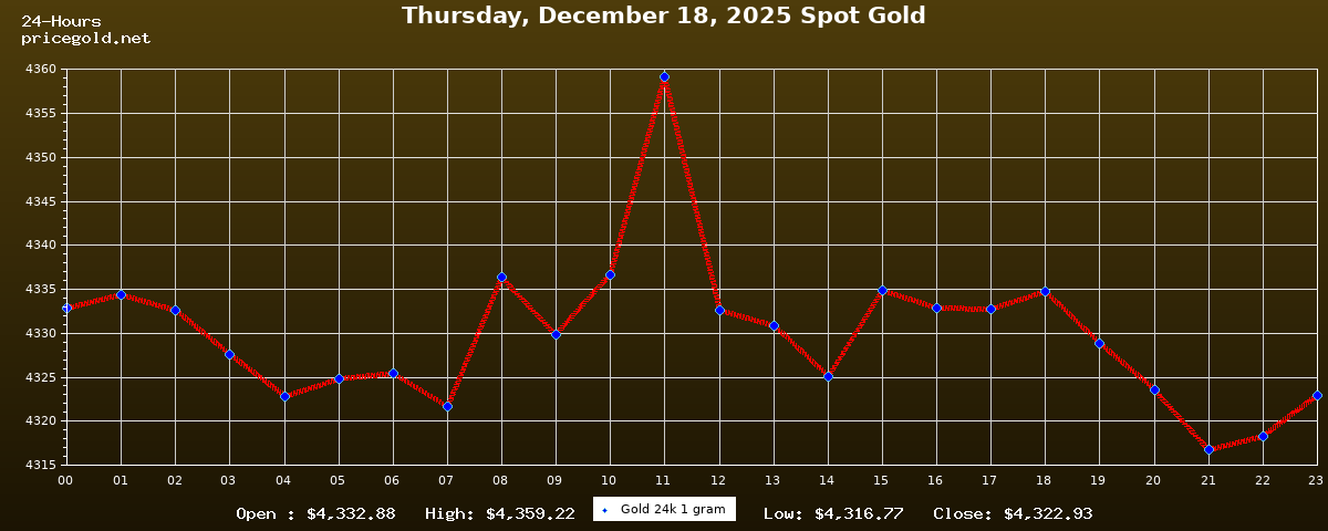 18 Aralık 2025 Perşembe günü altının ons fiyatı $4.322,93. Altının gram fiyatı $138,99. Altının bugün en yüksek fiyatı $4.359,22, en düşük fiyatı ise $4.316,77.
