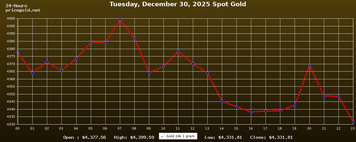 30 Aralık 2025 Salı günü altının ons fiyatı $4.331,81. Altının gram fiyatı $139,27. Altının bugün en yüksek fiyatı $4.399,59, en düşük fiyatı ise $4.331,81.