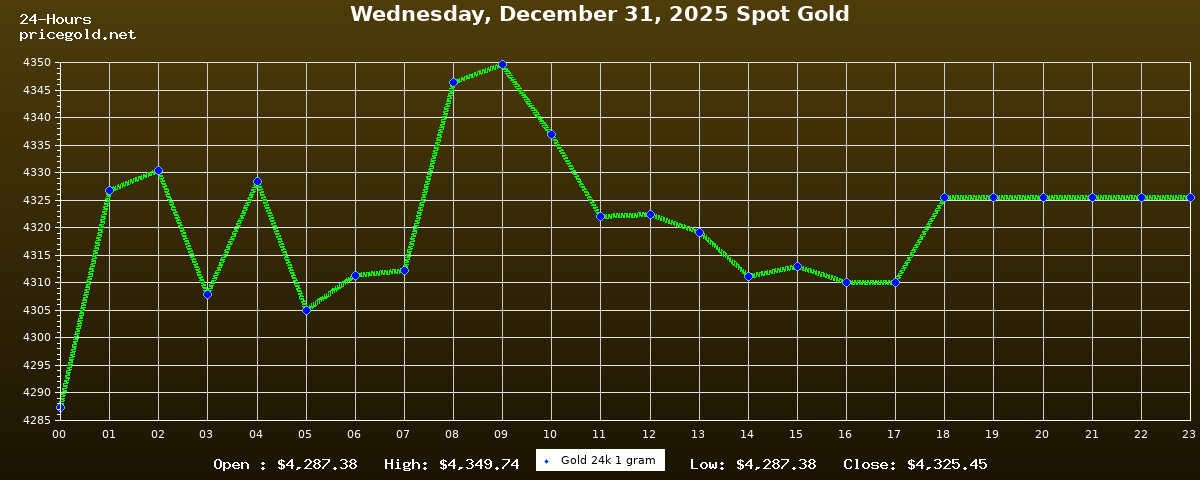 31 Aralık 2025 Çarşamba günü altının ons fiyatı $4.325,45. Altının gram fiyatı $139,07. Altının bugün en yüksek fiyatı $4.349,74, en düşük fiyatı ise $4.287,38.