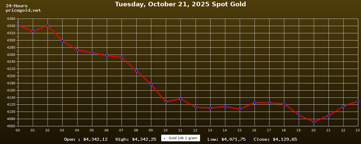 21 Ekim 2025 Salı günü altının ons fiyatı $4.129,65. Altının gram fiyatı $132,77. Altının bugün en yüksek fiyatı $4.342,25, en düşük fiyatı ise $4.071,75.