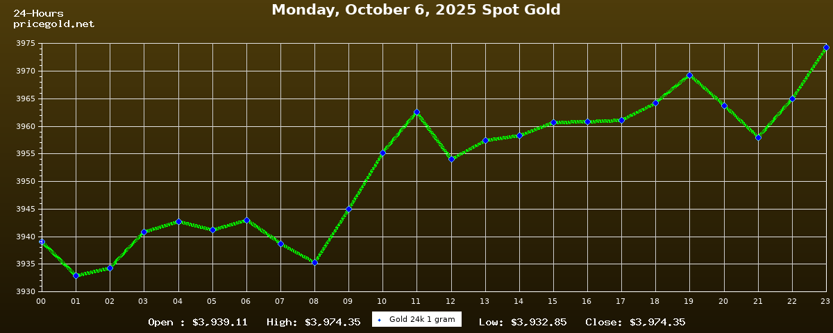 6 Ekim 2025 Pazartesi günü altının ons fiyatı $3.974,35. Altının gram fiyatı $127,78. Altının bugün en yüksek fiyatı $3.974,35, en düşük fiyatı ise $3.932,85.