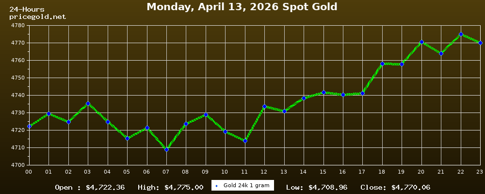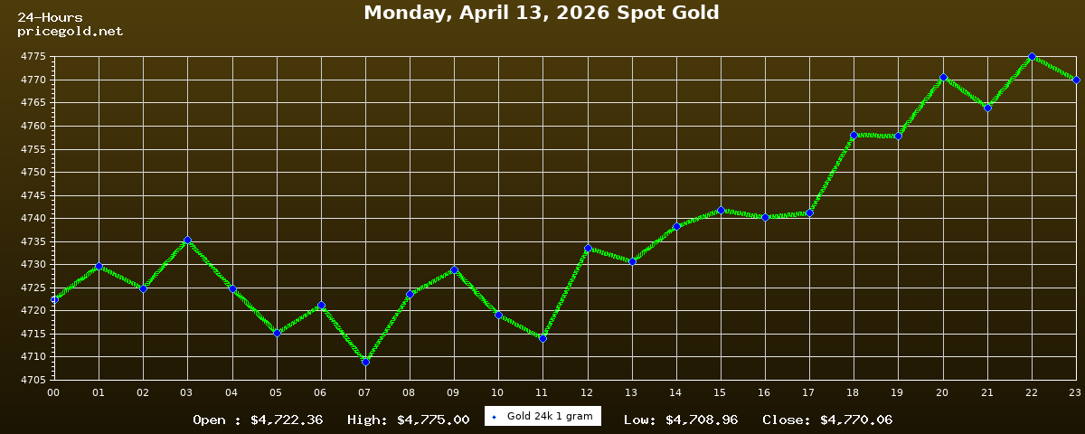 13 Nisan 2026 Pazartesi günü altının ons fiyatı $4.770,06. Altının gram fiyatı $153,36. Altının bugün en yüksek fiyatı $4.775,00, en düşük fiyatı ise $4.708,96.