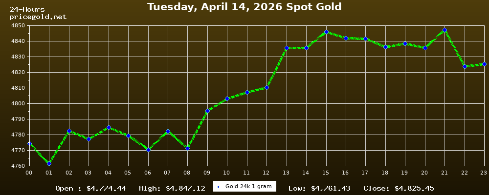 14 Nisan 2026 Salı günü altının ons fiyatı $4.825,45. Altının gram fiyatı $155,14. Altının bugün en yüksek fiyatı $4.847,12, en düşük fiyatı ise $4.761,43.