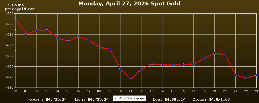 27 Nisan 2026 Pazartesi günü altının ons fiyatı $4.671,68. Altının gram fiyatı $150,20. Altının bugün en yüksek fiyatı $4.725,24, en düşük fiyatı ise $4.668,14.