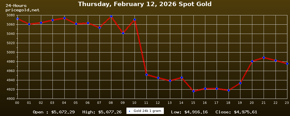 12 Şubat 2026 Perşembe günü altının ons fiyatı $4.975,61. Altının gram fiyatı $159,97. Altının bugün en yüksek fiyatı $5.077,26, en düşük fiyatı ise $4.916,16.