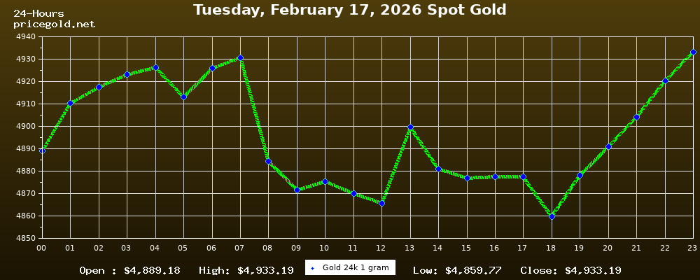 17 Şubat 2026 Salı günü altının ons fiyatı $4.933,19. Altının gram fiyatı $158,61. Altının bugün en yüksek fiyatı $4.933,19, en düşük fiyatı ise $4.859,77.