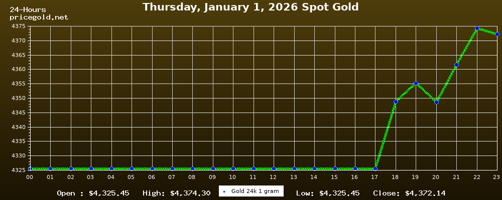 1 Ocak 2026 Perşembe günü altının ons fiyatı $4.372,14. Altının gram fiyatı $140,57. Altının bugün en yüksek fiyatı $4.374,30, en düşük fiyatı ise $4.325,45.