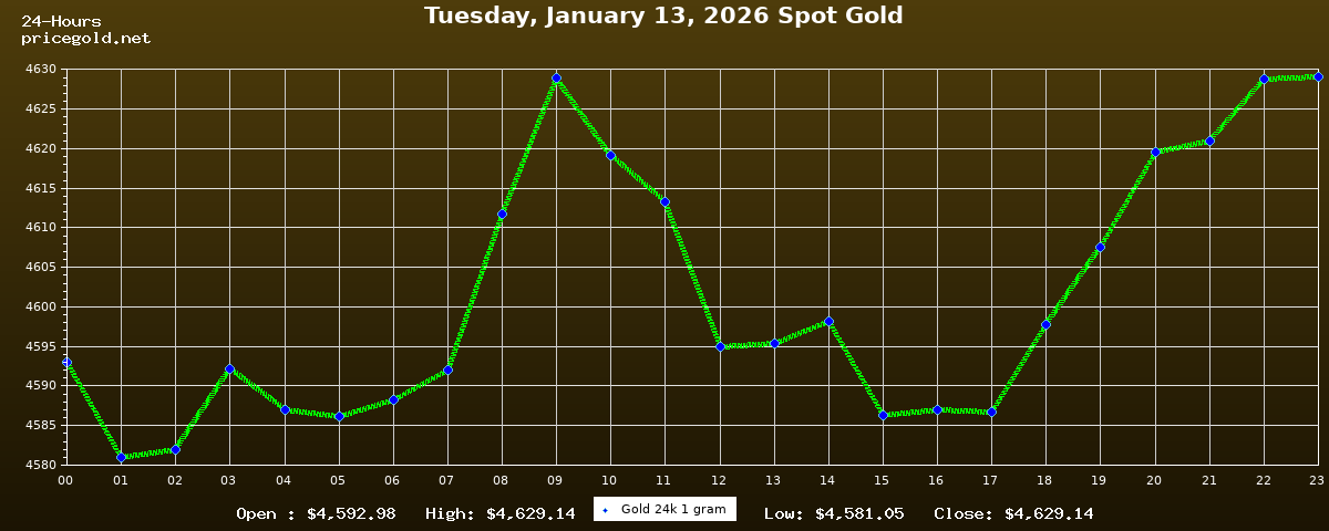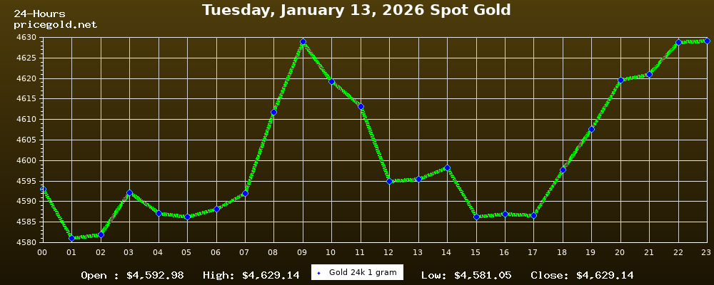 13 Ocak 2026 Salı günü altının ons fiyatı $4.629,14. Altının gram fiyatı $148,83. Altının bugün en yüksek fiyatı $4.629,14, en düşük fiyatı ise $4.581,05.