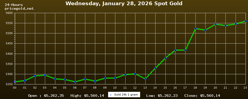 28 Ocak 2026 Çarşamba günü altının ons fiyatı $5.560,14. Altının gram fiyatı $178,76. Altının bugün en yüksek fiyatı $5.560,14, en düşük fiyatı ise $5.262,23.