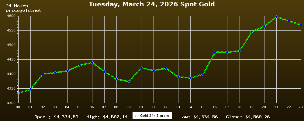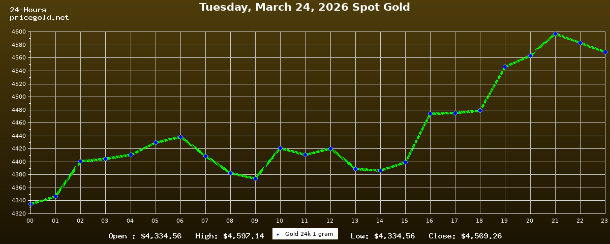 24 Mart 2026 Salı günü altının ons fiyatı $4.569,26. Altının gram fiyatı $146,91. Altının bugün en yüksek fiyatı $4.597,14, en düşük fiyatı ise $4.334,56.