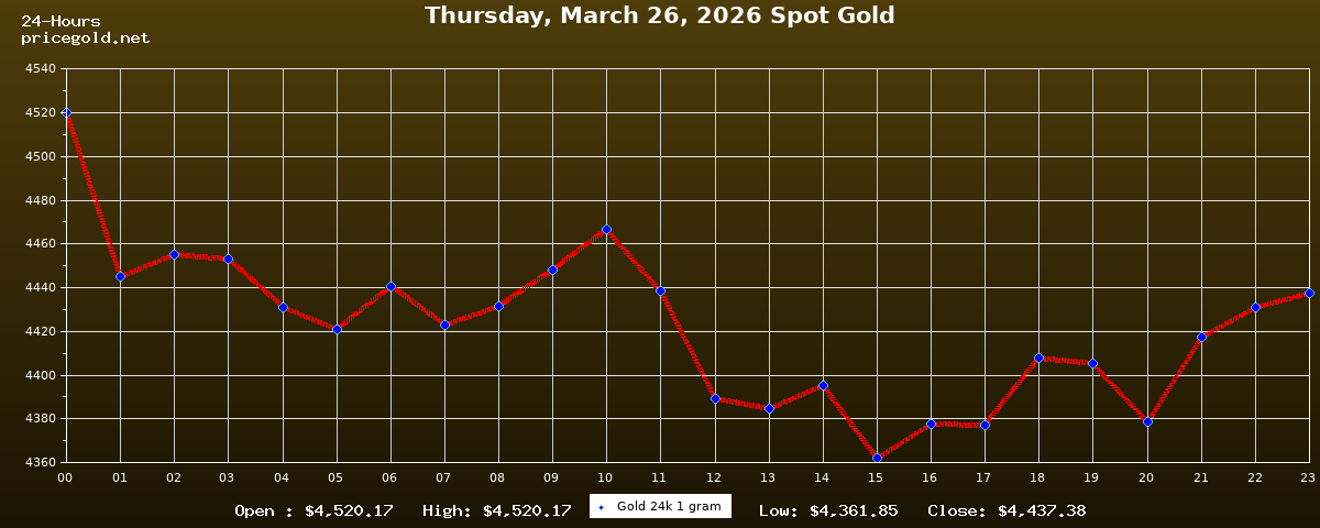 26 Mart 2026 Perşembe günü altının ons fiyatı $4.437,38. Altının gram fiyatı $142,67. Altının bugün en yüksek fiyatı $4.520,17, en düşük fiyatı ise $4.361,85.